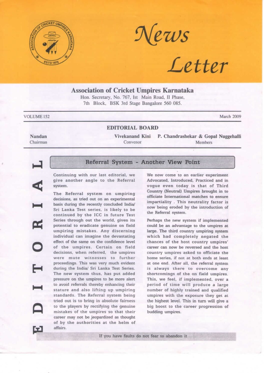 News Letter – March 2009