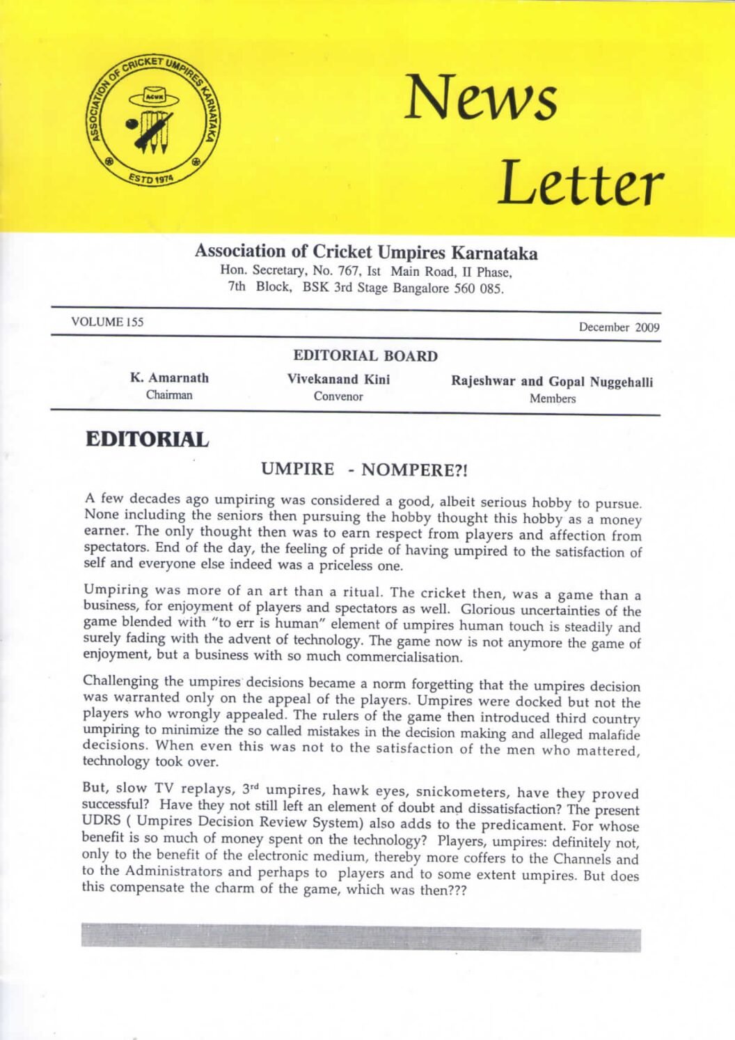 News Letter – December 2009