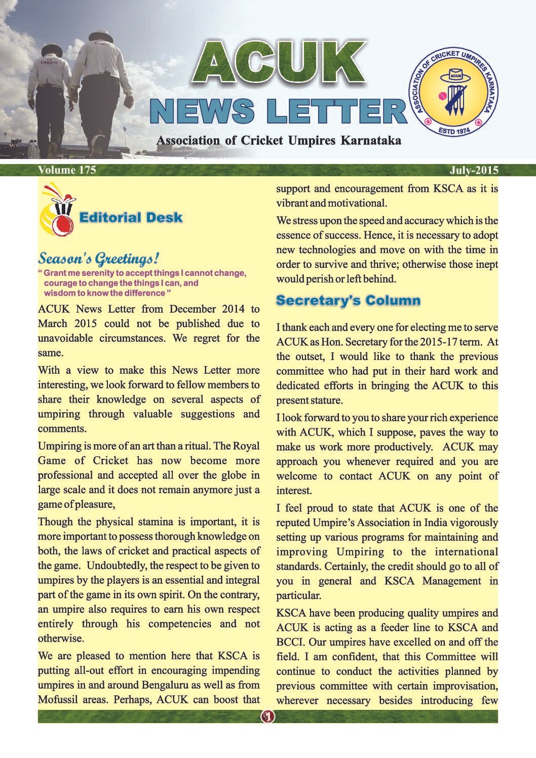 News Letter – July 2015