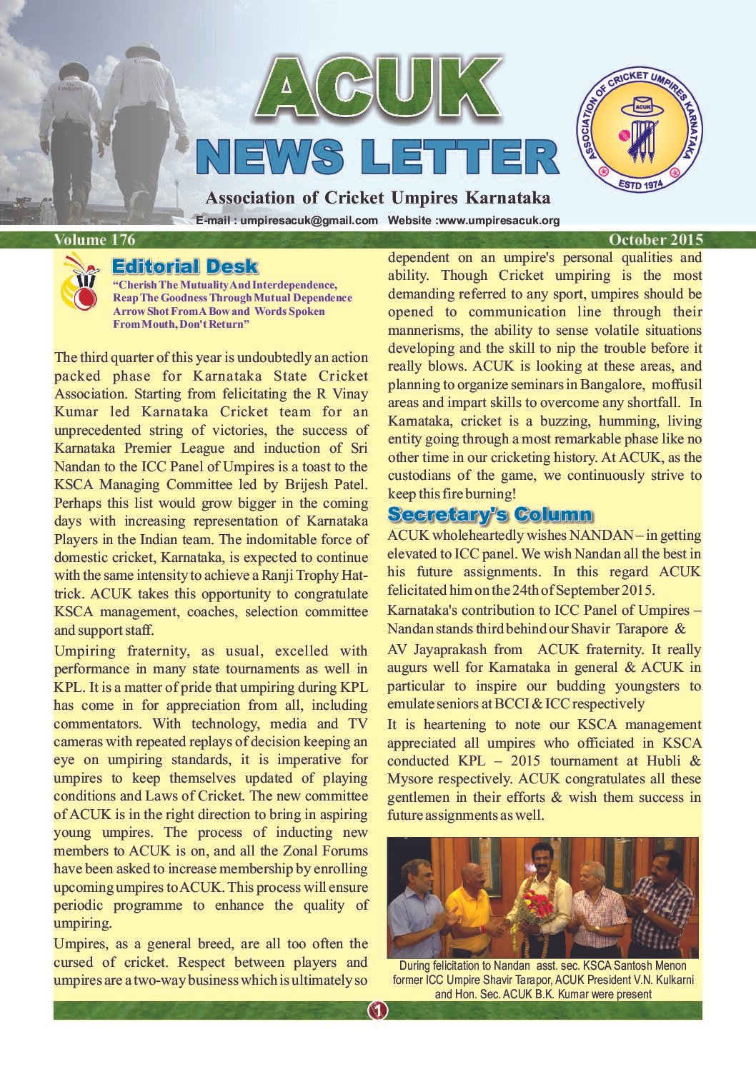 News Letter – October 2015